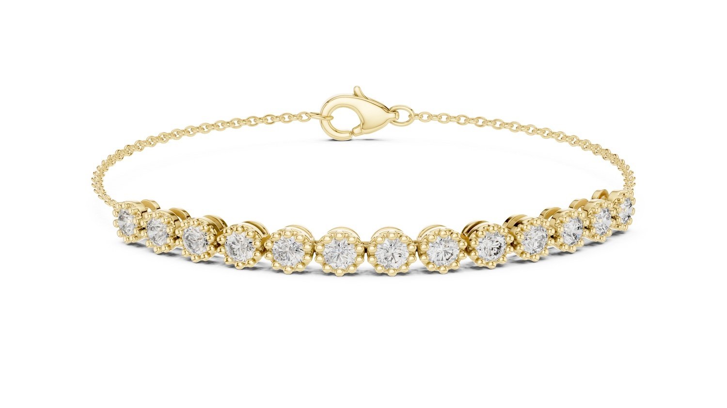 Delicate yet radiant, the Nivara Bracelet captures beauty in simplicity. Adorned with 13 round lab-grown diamonds totaling 1.43 carats, this bracelet is designed for women who appreciate subtle luxury and timeless grace.